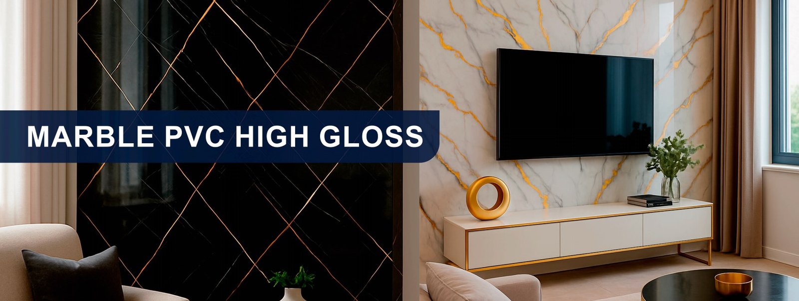 Marble PVC High Gloss is a decorative wall covering that replicates the look of marble with a high-gloss finish. It offers an aesthetic and functional solution for those seeking sophistication without the weight or cost of natural mvaterials. Made from high-quality PVC, this material is durable, easy to install, and low maintenance. Its reflective surface enhances brightness and creates a sense of spaciousness, making it ideal for both residential and commercial projects.
